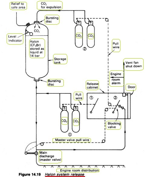 The halon release arrangement shown in Figure 14.19 consists of a storage